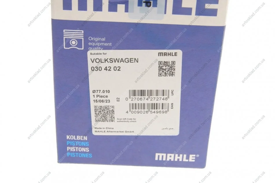Поршень двигуна VAG 77,01 AEA/AEE 1,6 94- (Mahle) MAHLE / KNECHT 030 42 02