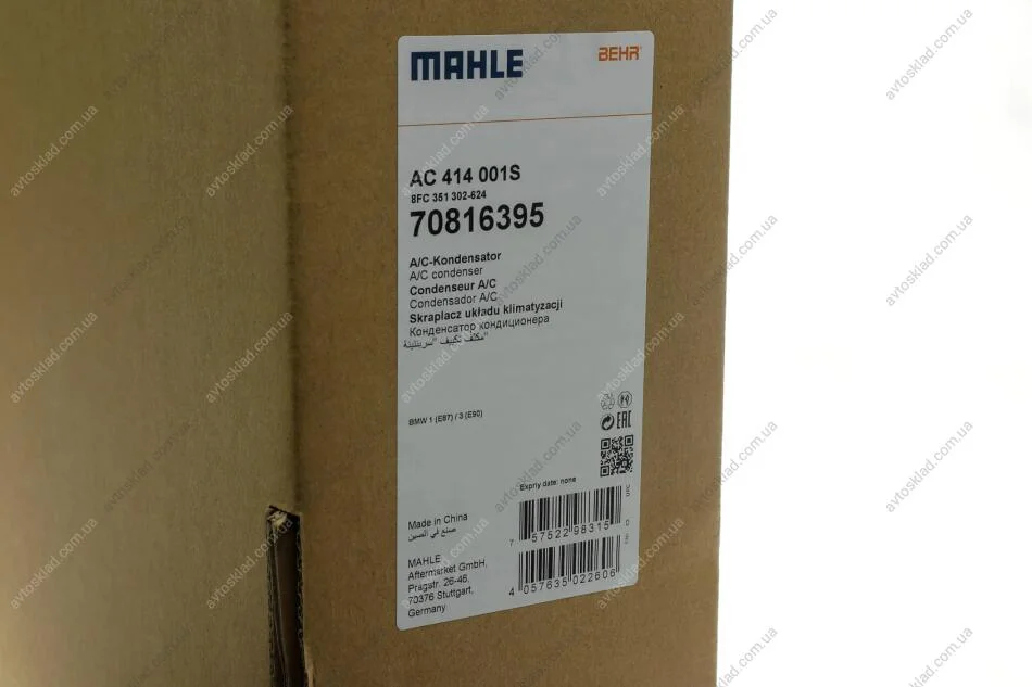 Радіатор кондиціонера MAHLE / KNECHT AC 414 001S