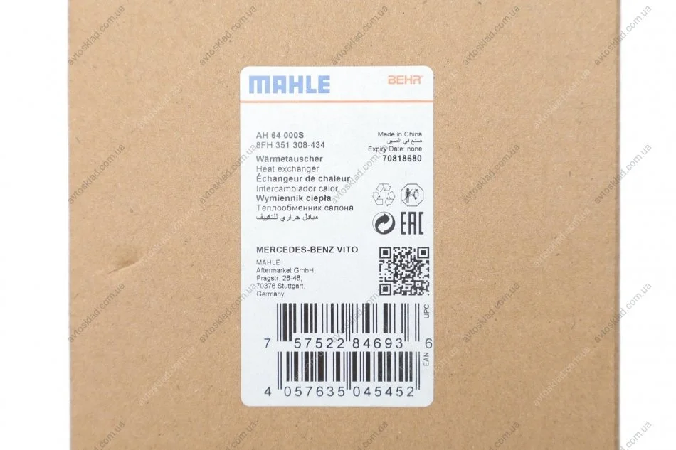 Радіатор пічки MAHLE / KNECHT AH 64 000S