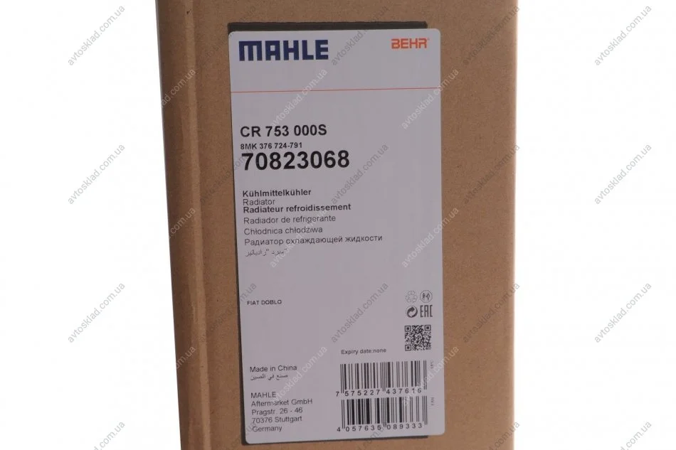 Радіатор охолодження MAHLE / KNECHT CR 753 000S