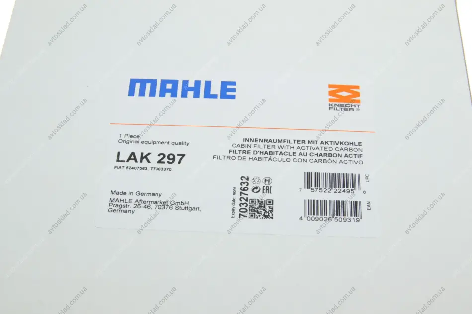 Фільтр салону вугільний (Knecht-Mahle) MAHLE / KNECHT LAK297