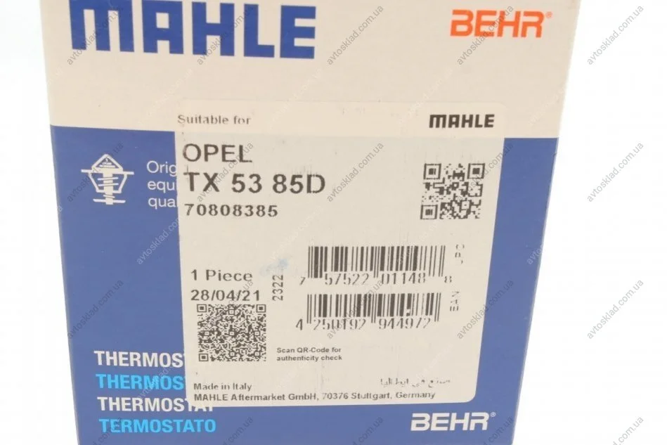 Термостат системи охолодження двигуна MAHLE / KNECHT TX 53 85 D