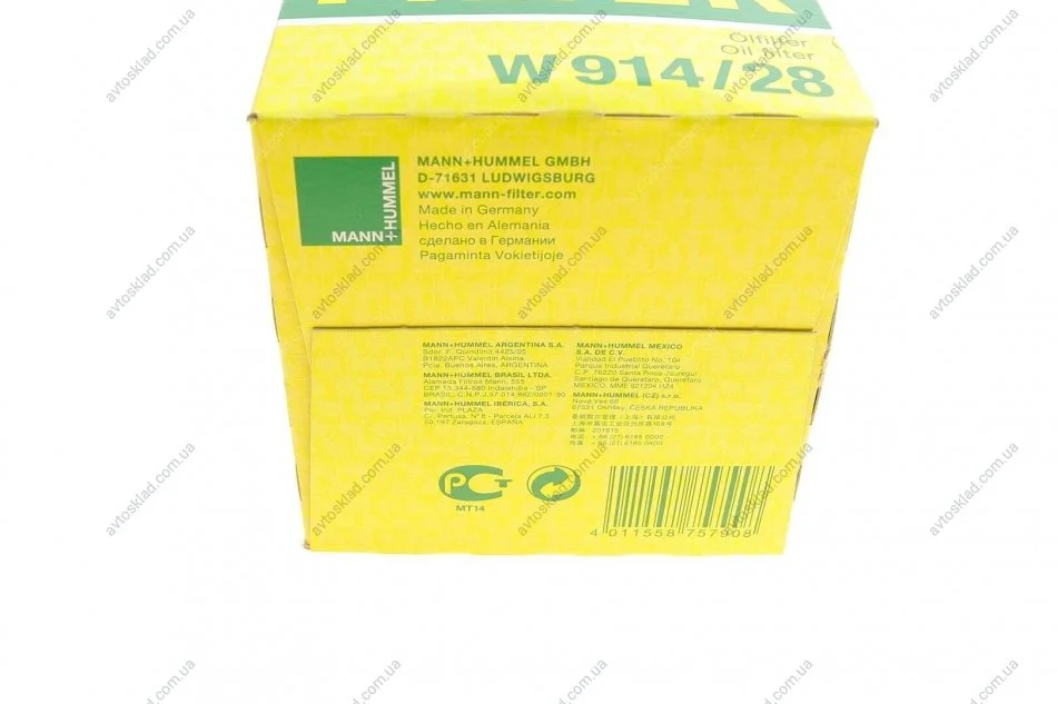 Фільтр масляний двигуна MANN W914/28