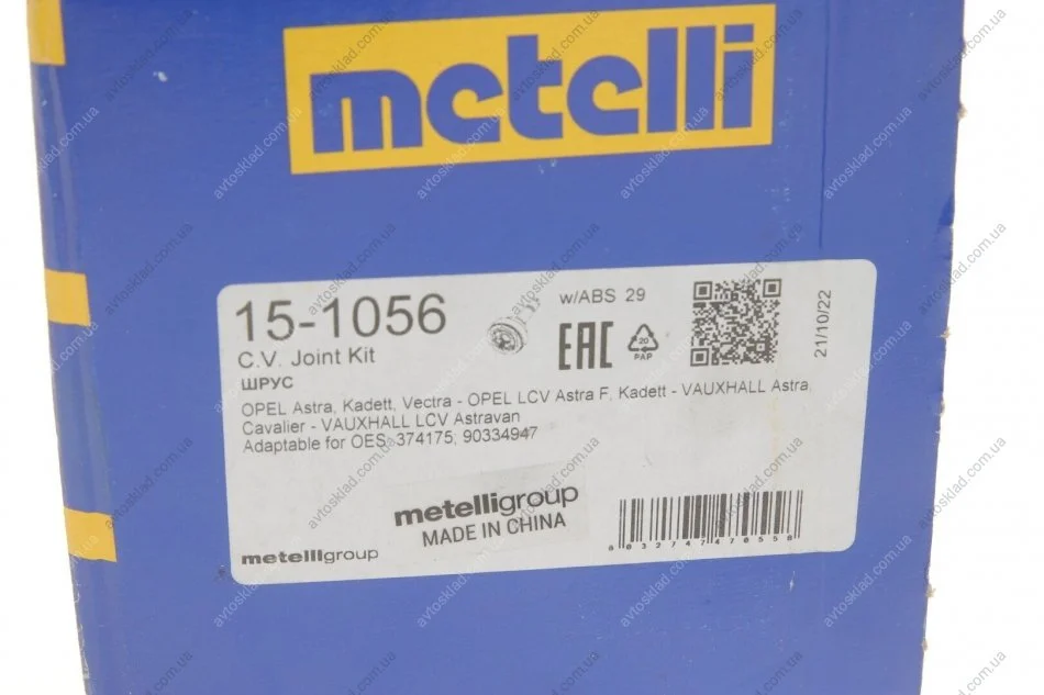 ШРУС зі змазкою в комплекті Metelli 15-1056