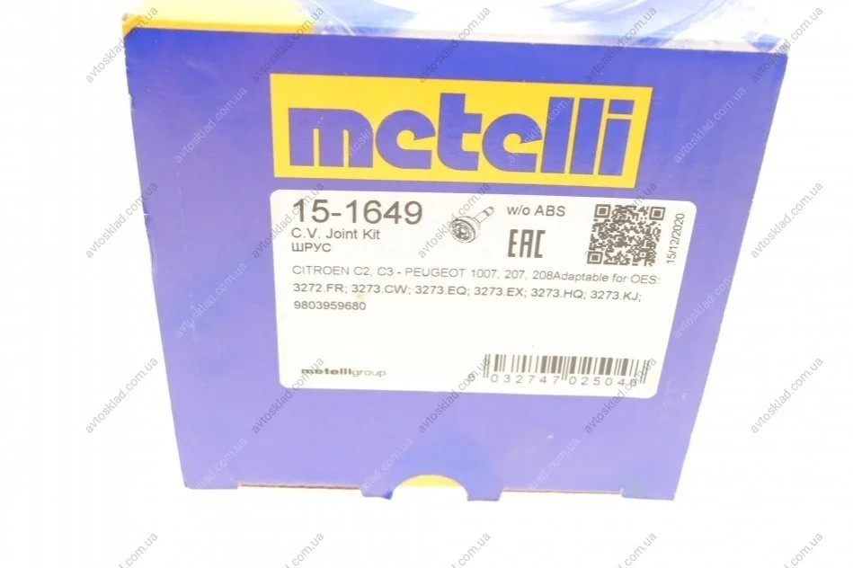 ШРУС зі змазкою в комплекті Metelli 15-1649
