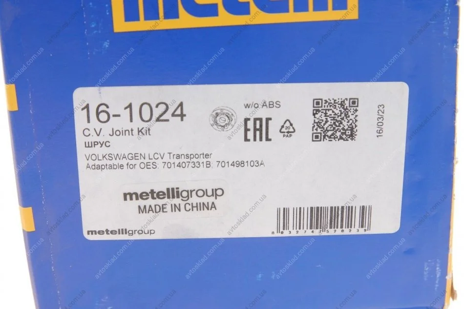 Шрус (внутрішній) Metelli 16-1024