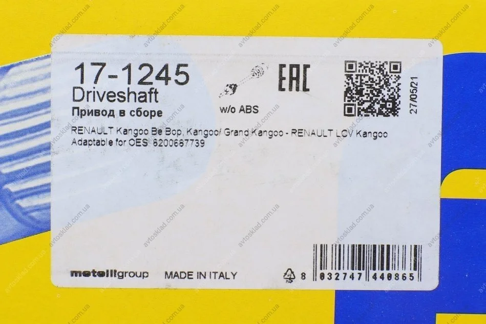 Напіввісь Renault Metelli 17-1245
