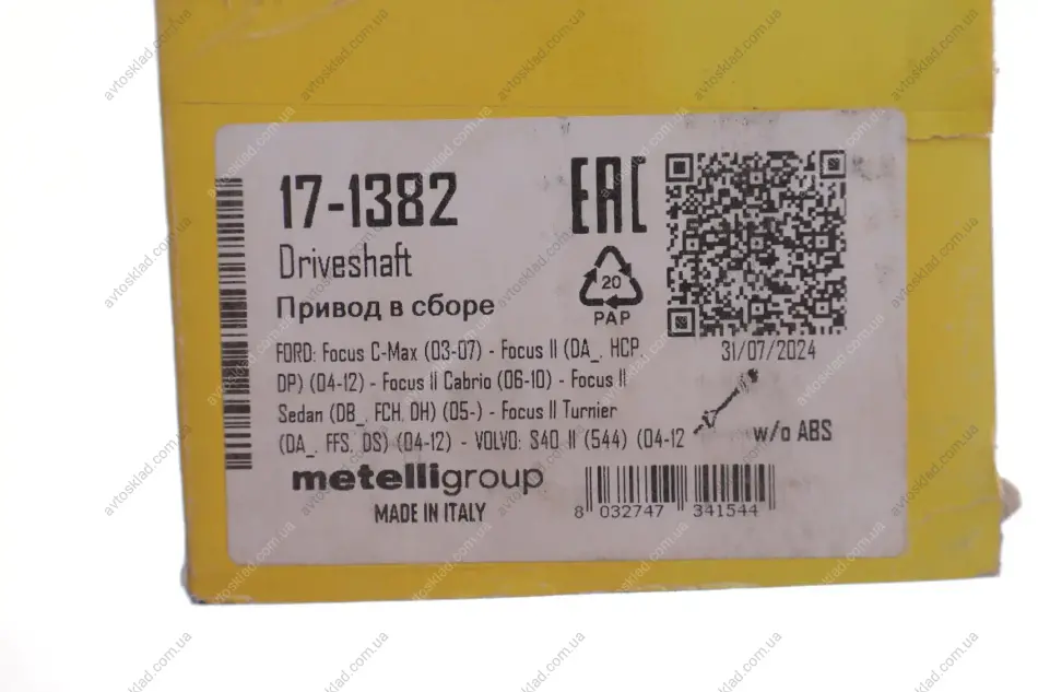 Привідний вал Metelli 17-1382