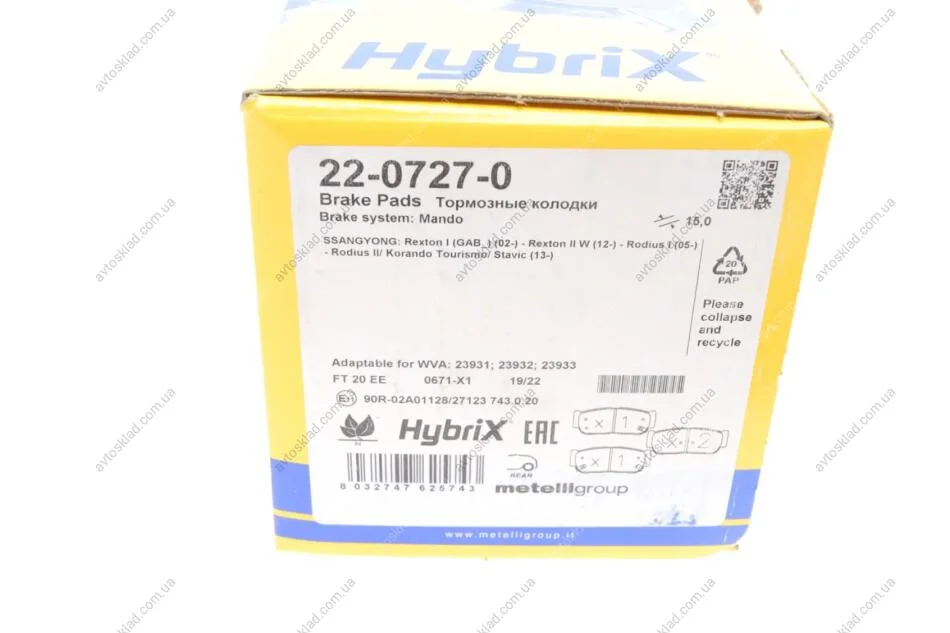 Аналоги "22-0727-0 Metelli":