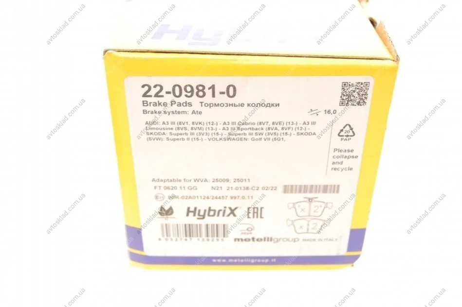 Аналоги "22-0981-0 Metelli":