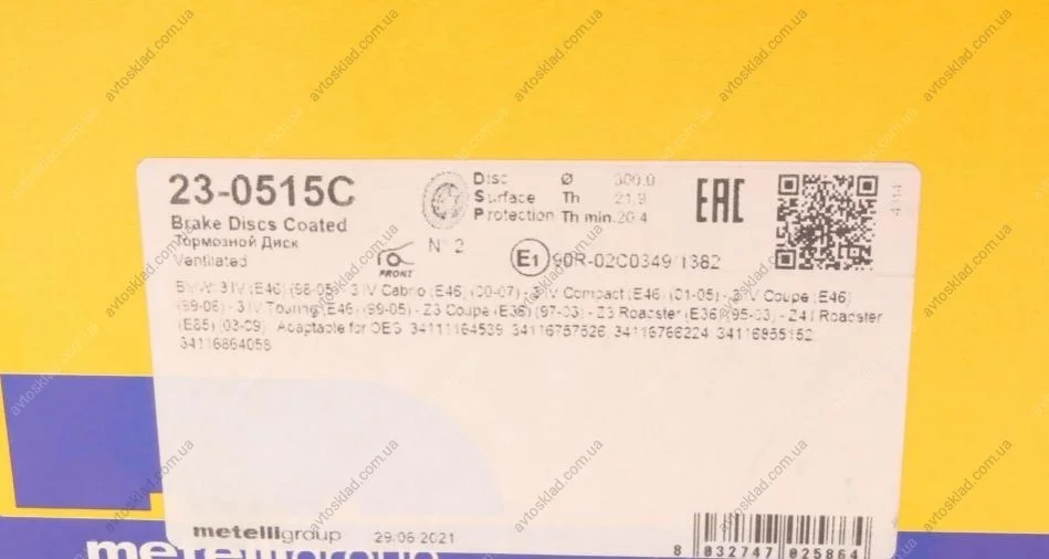 Диск гальмівний Metelli 23-0515C