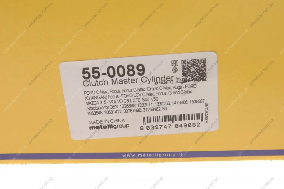 Головний циліндр зчеплення Metelli 55-0089