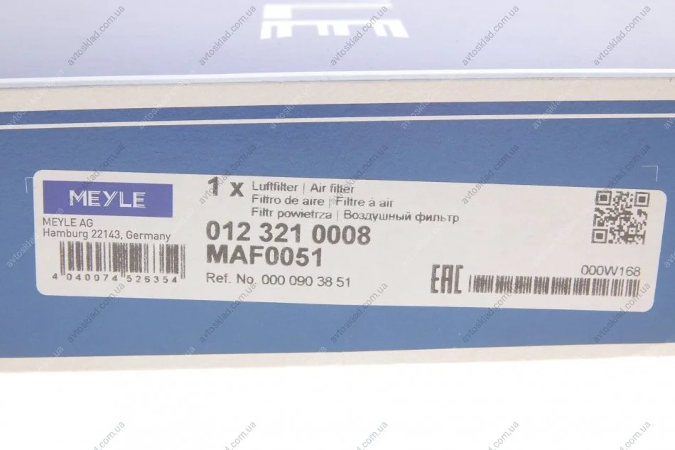 Фільтр повітряний MEYLE 012 321 0008