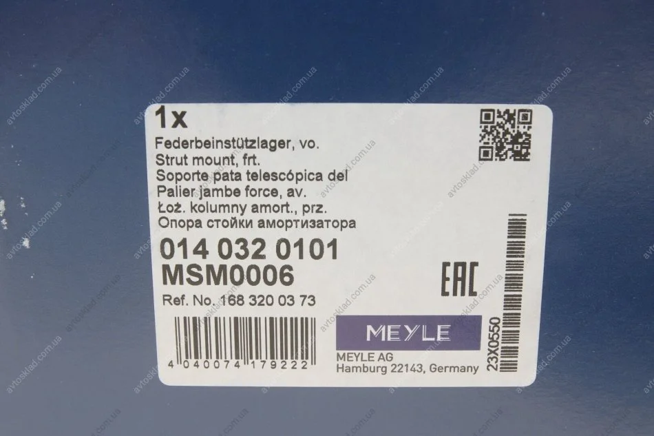 Опора аморт. MERCEDES-BENZ BM 168 (A-Class) перед. з підш. MEYLE 014 032 0101