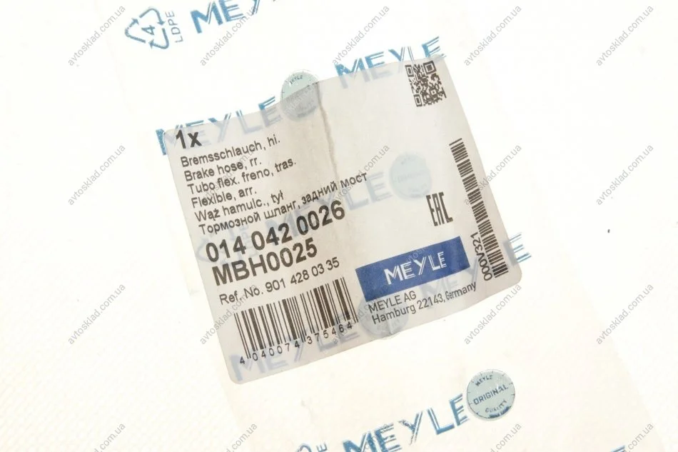 Шланг гальмівний MEYLE 014 042 0026