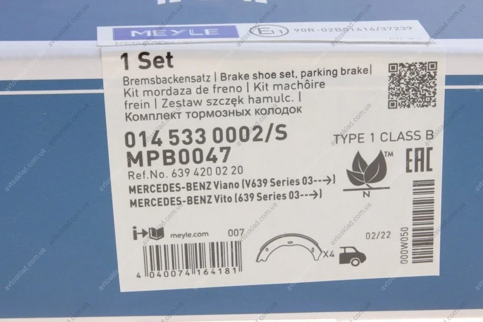 Комплект гальмівних колодок, стояночного гальма MEYLE 0145330002S