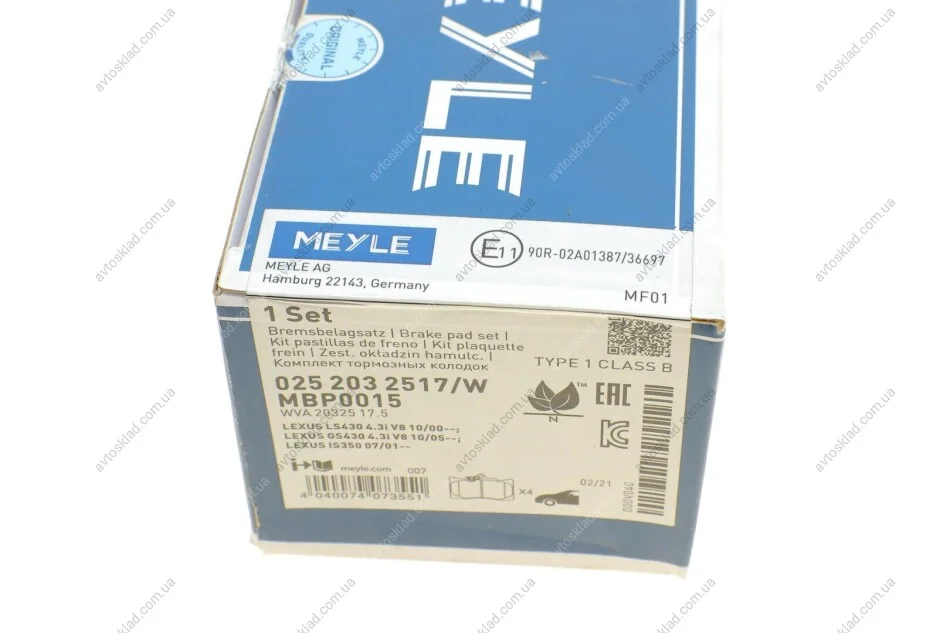 Колодки гальмівні MEYLE 025 203 2517/W