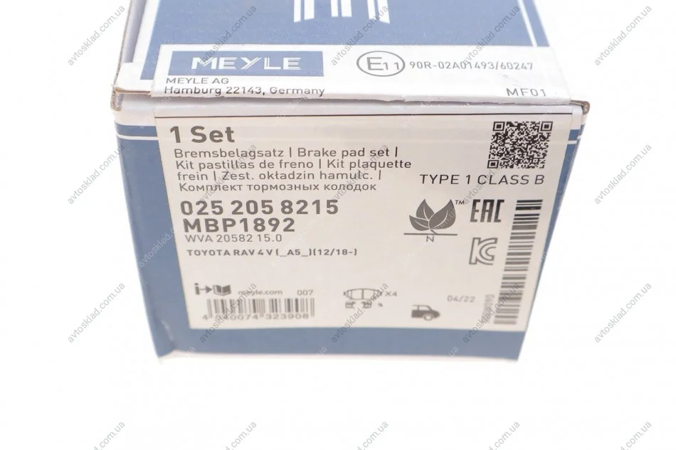 Комплект колодок гальмівних MEYLE 025 205 8215