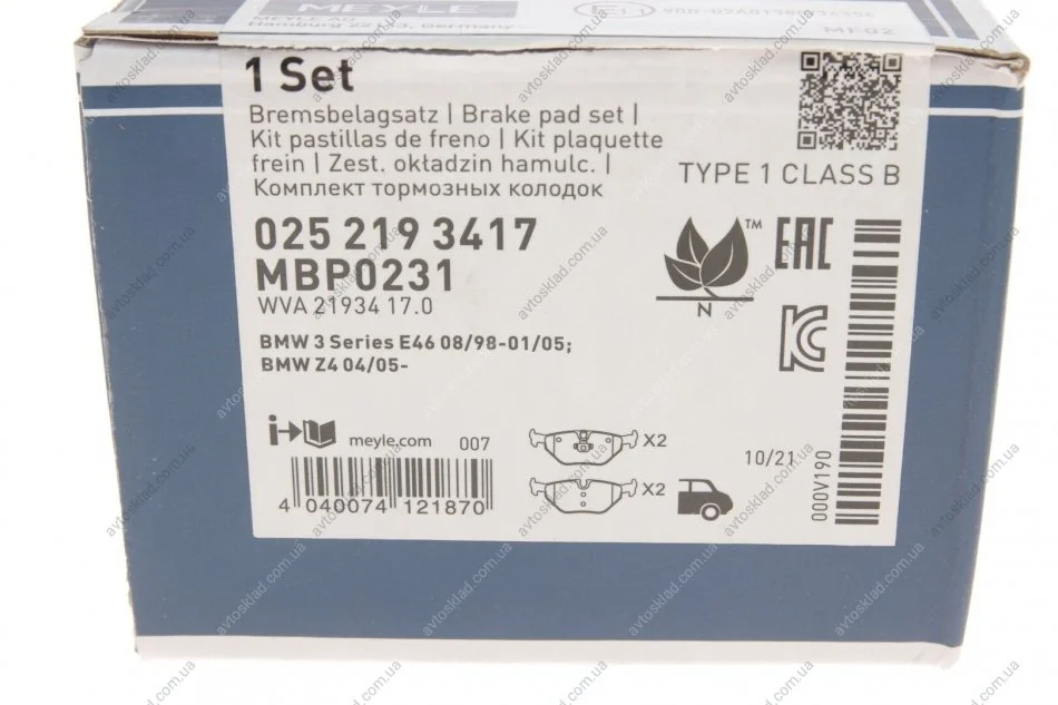 Гальмівні колодки MEYLE 025 219 3417