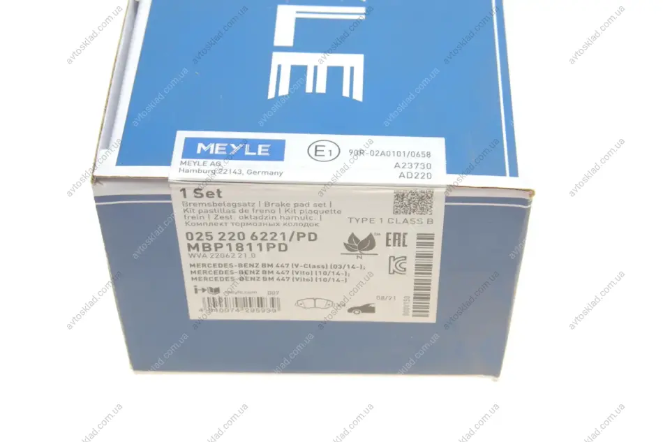 Комплект колодок гальмівних MEYLE 025 220 6221/PD