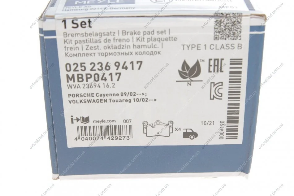 Гальмівні колодки MEYLE 025 236 9417