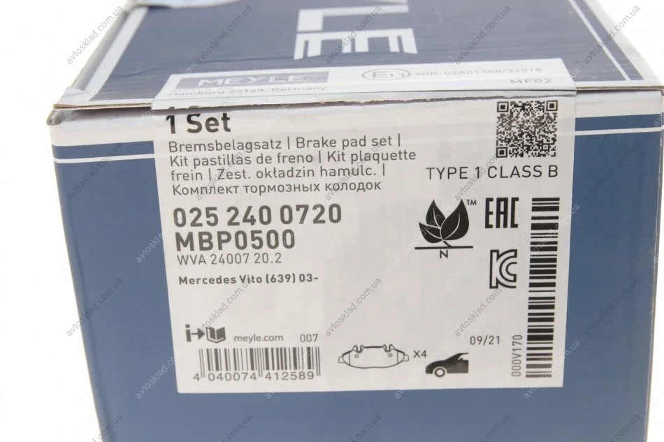 Гальмівні колодки MEYLE 025 240 0720