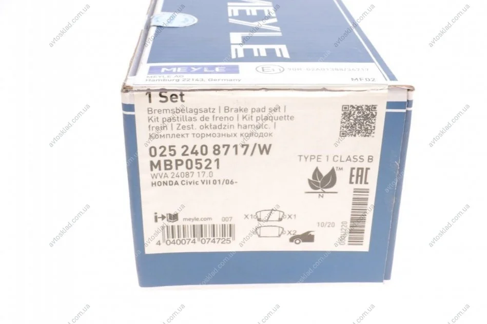 Колодки гальмівні MEYLE 0252408717W