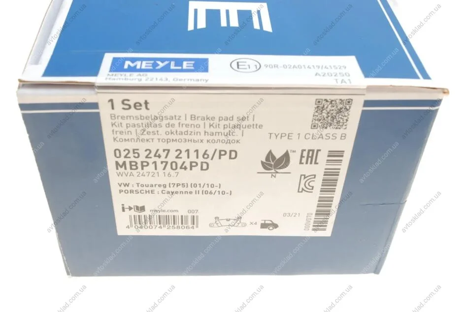 Комплект колодок гальмівних MEYLE 025 247 2116/PD