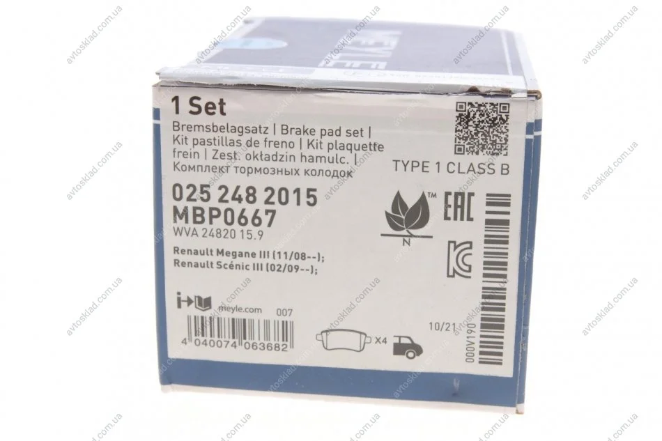 Гальмівні колодки MEYLE 025 248 2015