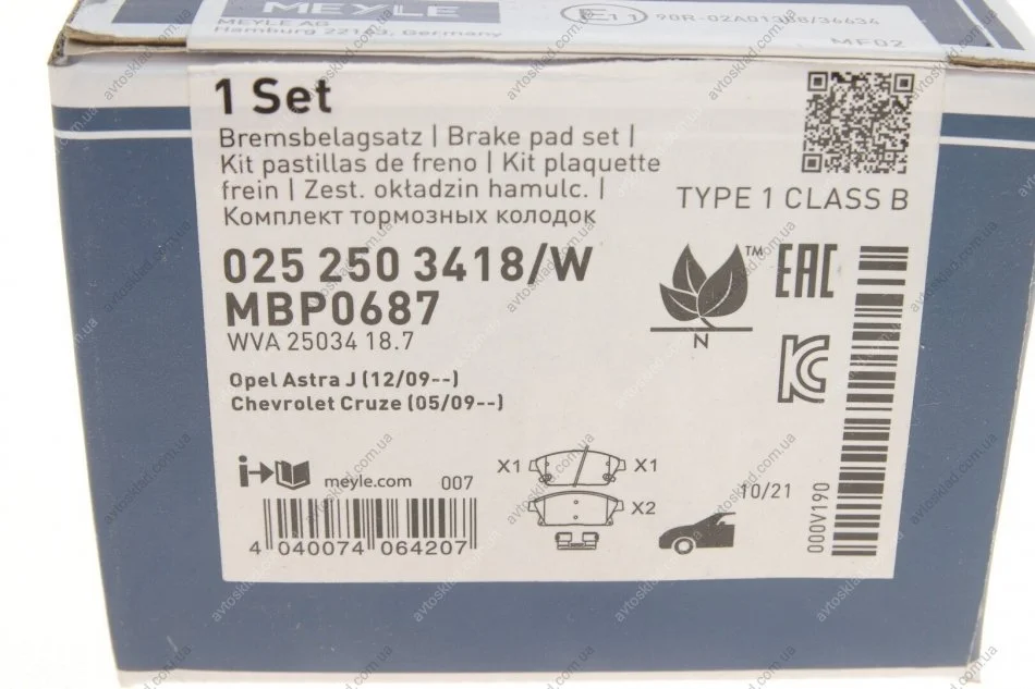 Гальмівні колодки MEYLE 025 250 3418/W