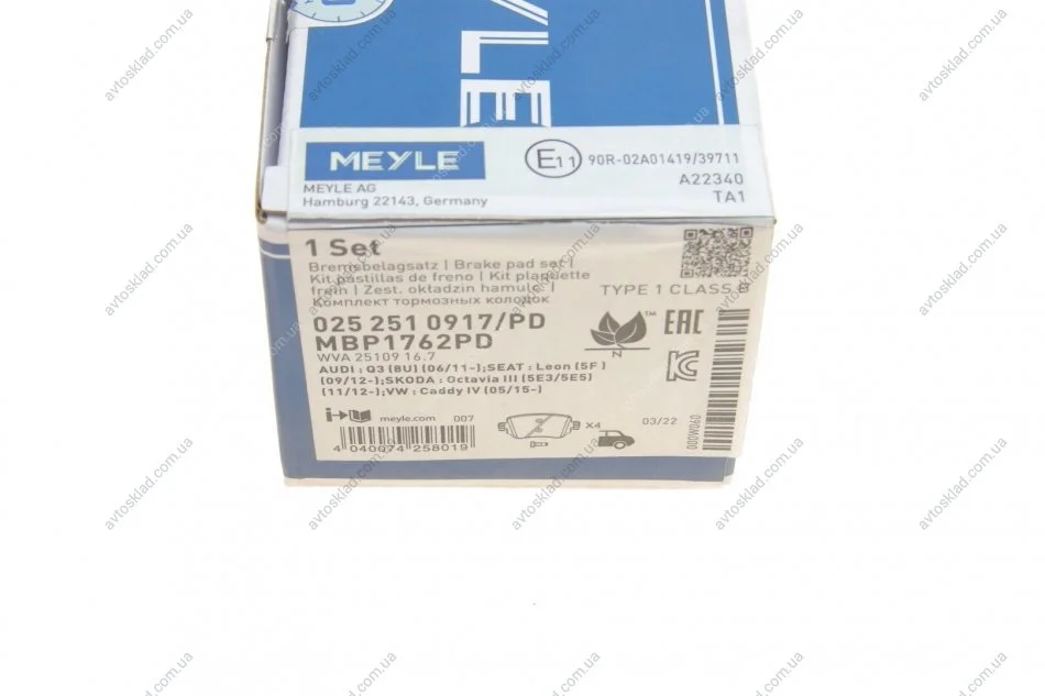 Комплект гальмівних колодок MEYLE 0252510917PD