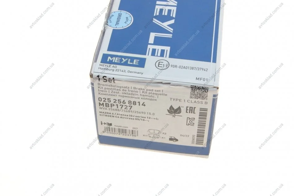 Комплект колодок гальмівних MEYLE 025 256 8814