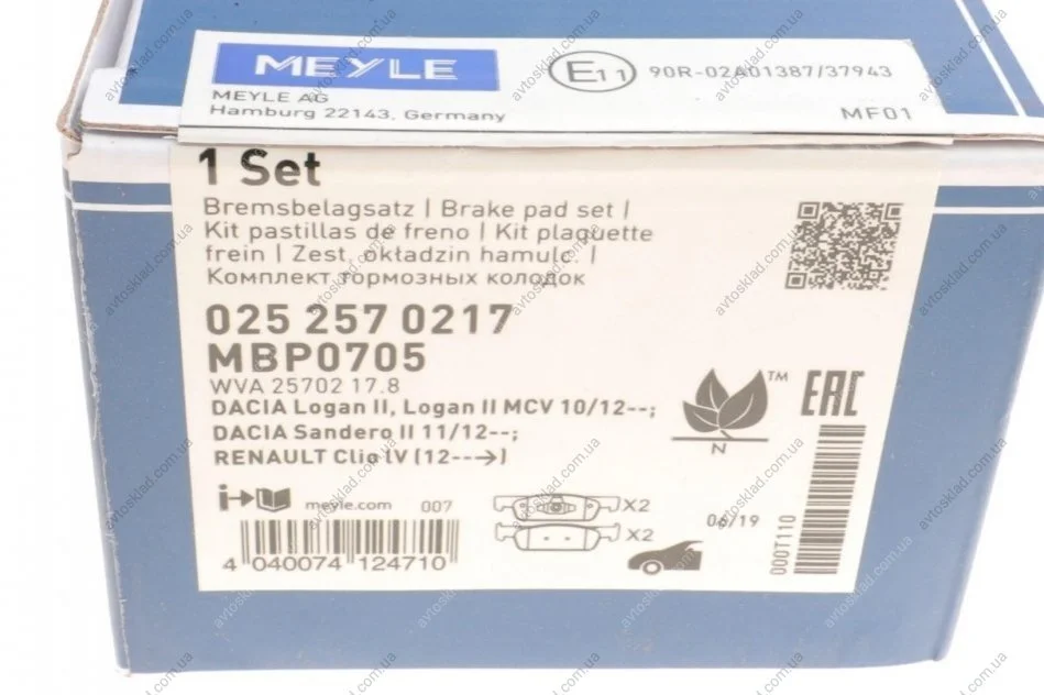 Гальмівні колодки дискові DACIA Logan II MEYLE 025 257 0217