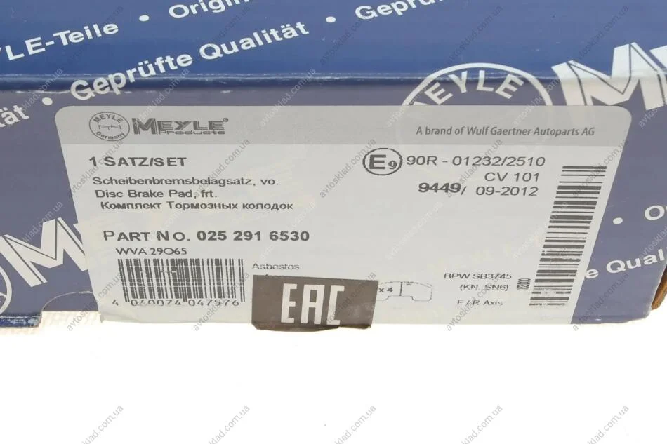 Аналоги "025 291 6530 MEYLE":