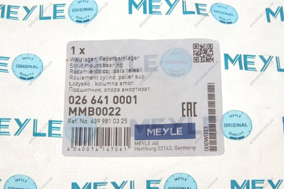 Підшипник опори амортизатора, 03- MEYLE 026 641 0001