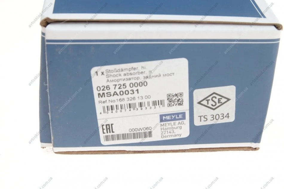 Амортизатор підв. MERCEDES-BENZ BM 168 (A-Class) задн. MEYLE 026 725 0000