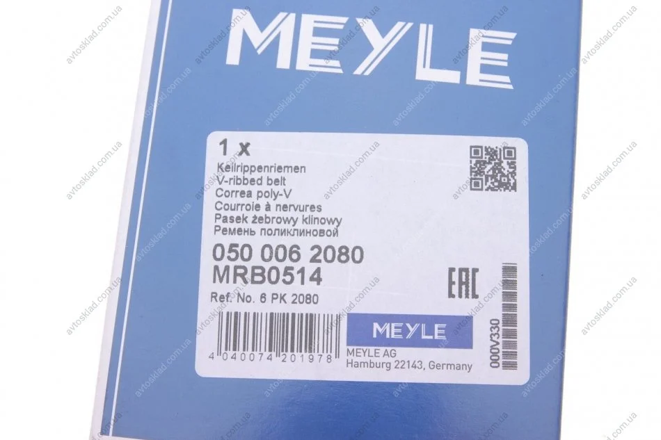 Ремінь генератора MEYLE 050 006 2080