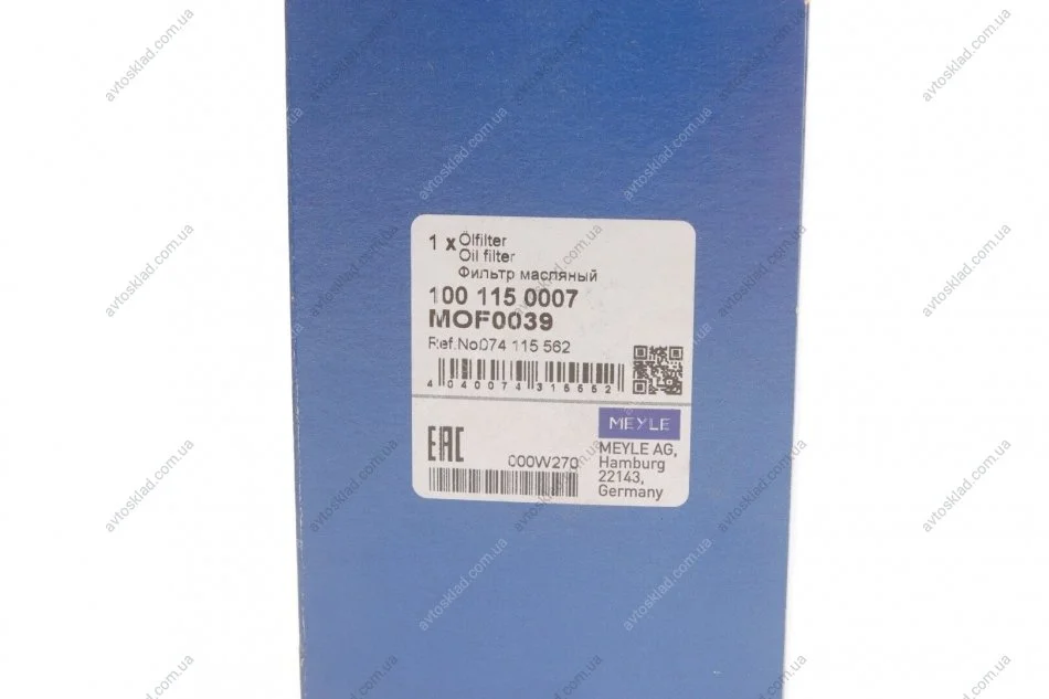 Фільтр масляний MEYLE 1001150007