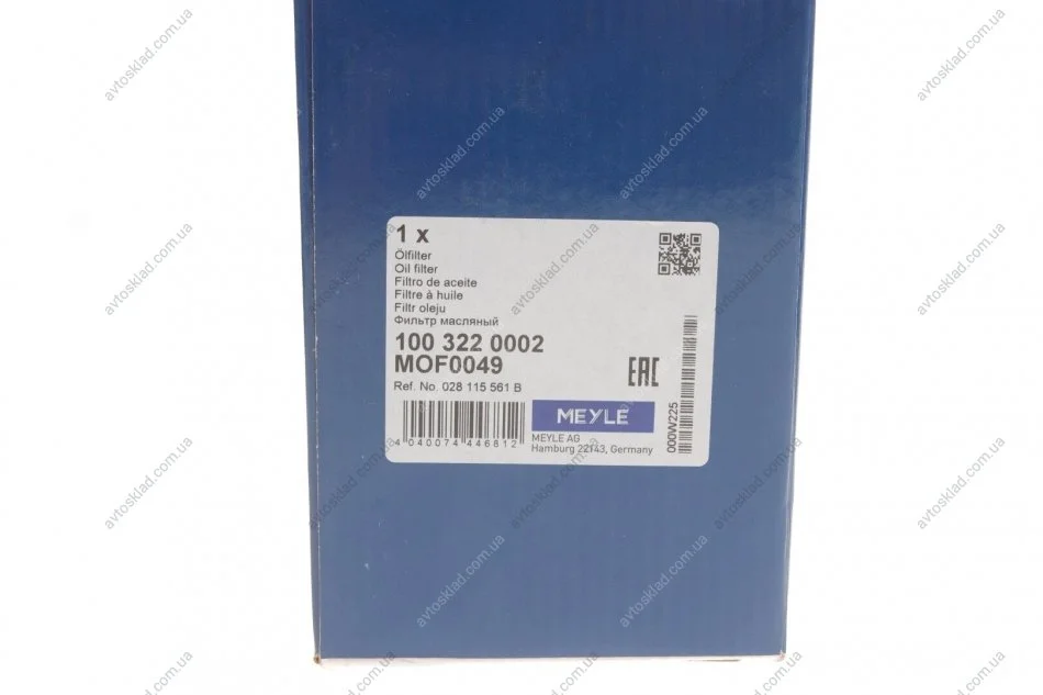 Фільтр масляний MEYLE 100 322 0002