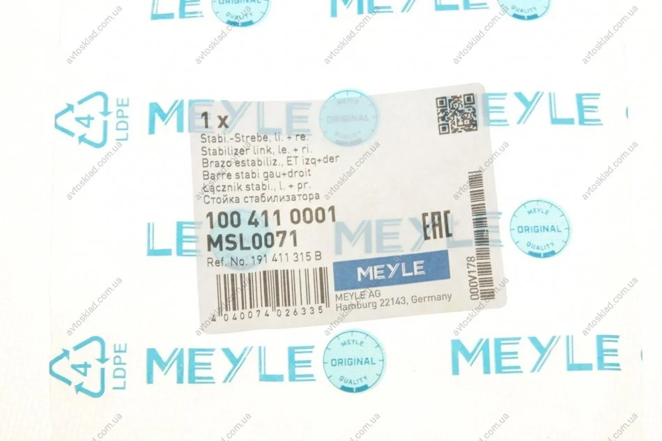 Комплекти в яких міститься "100 411 0001 MEYLE":