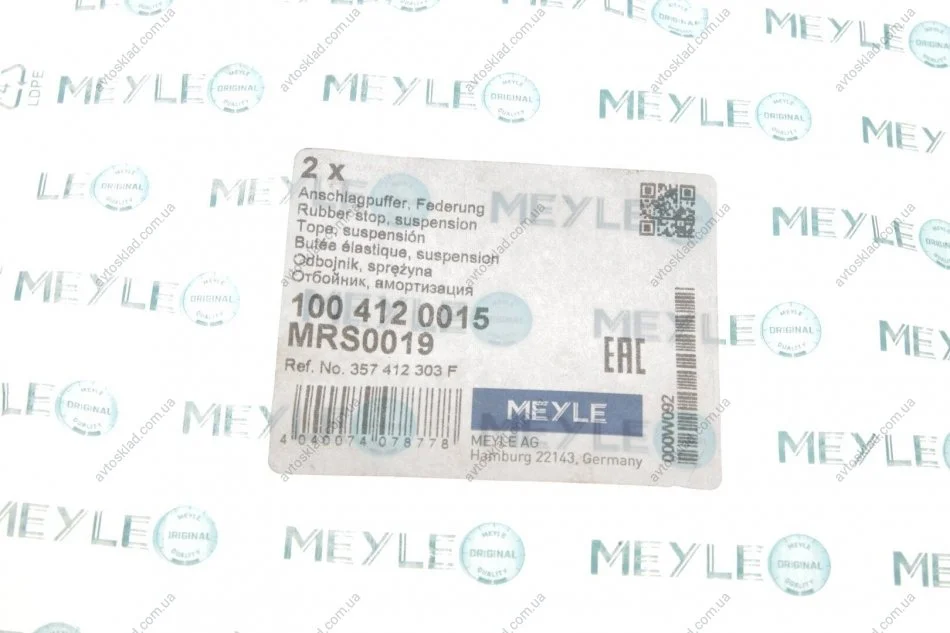 Відбійник амортизатора VAG передн. MEYLE 100 412 0015