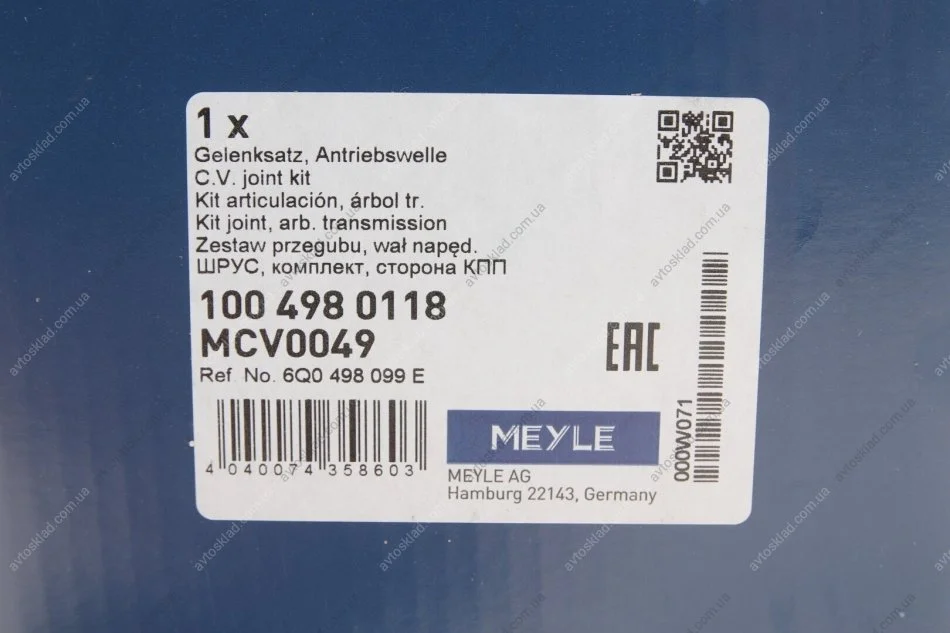 Аналоги "100 498 0118 MEYLE":
