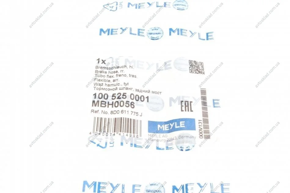 Шланг гальмівний MEYLE 100 525 0001