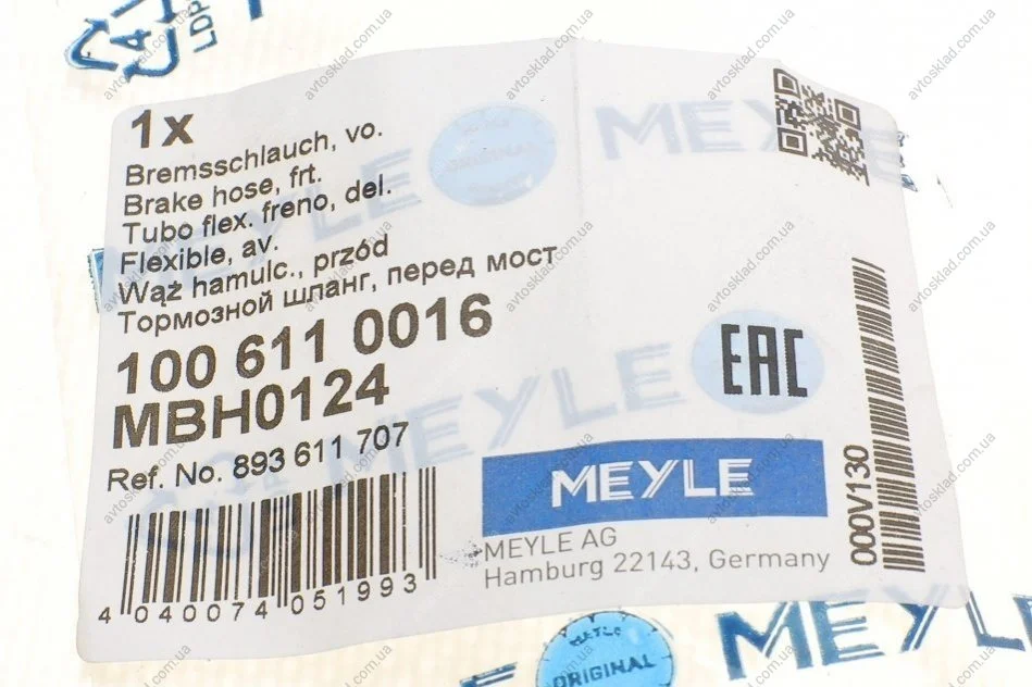 Гальмівний шланг MEYLE 100 611 0016