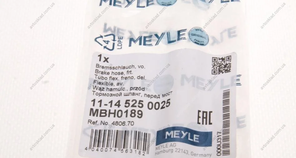Шланг гальмівний MEYLE 11-14 525 0025