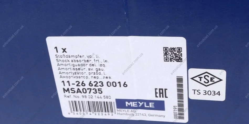 Амортизатор підвіски MEYLE 11266230016