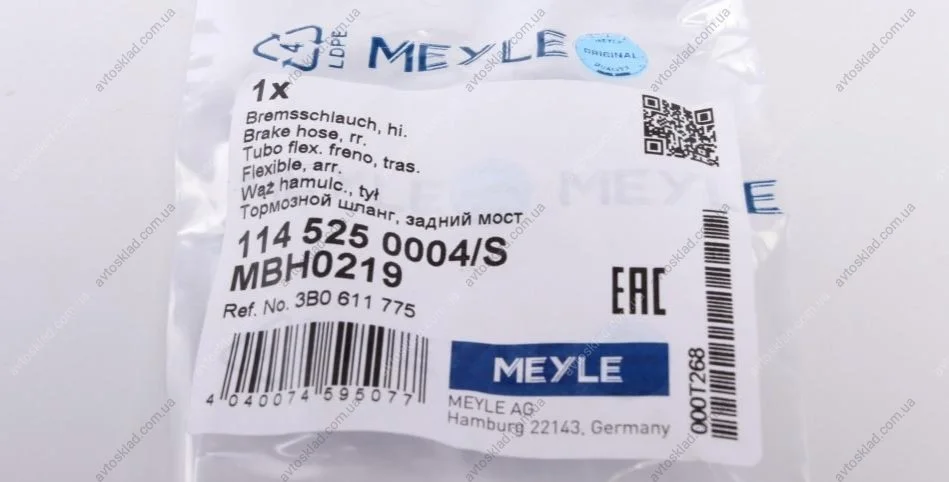 Шланг гальмівний MEYLE 114 525 0004/S