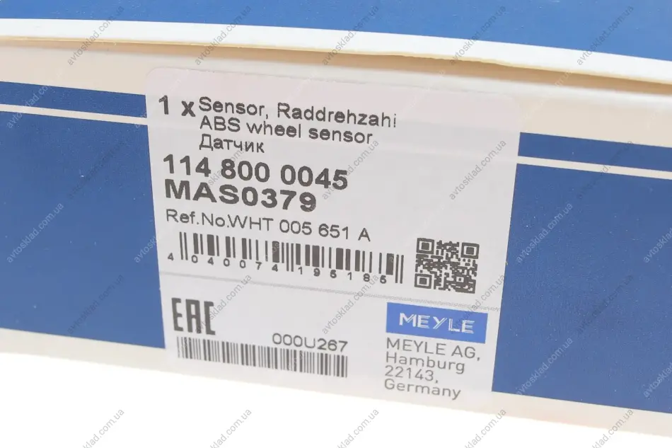 Датчик швидкості обертів коліс антиблокувальної системи гальм MEYLE 114 800 0045