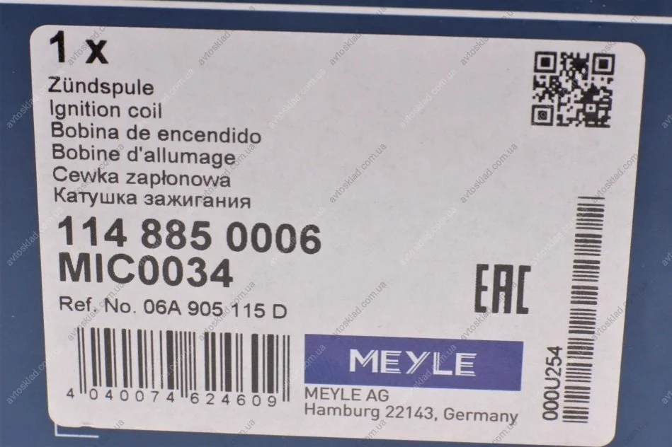 Котушка запалювання MEYLE 1148850006