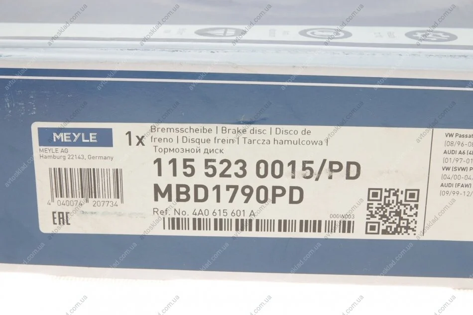 Диск гальмівний MEYLE 115 523 0015/PD